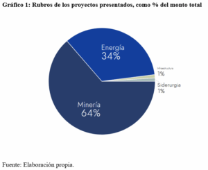 Portafolio total: 20 presentaciones por USD 34.422 M. Composición sectorial: 65% minería y 33% energía. El resto se reparte entre proyectos de siderurgia e infraestructura).