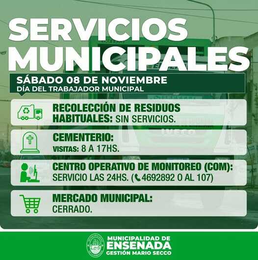 Se informa como será el funcionamiento de los servicios municipales en la ciudad de Ensenada el sábado 8 de noviembre, Día del Trabajador Municipal.