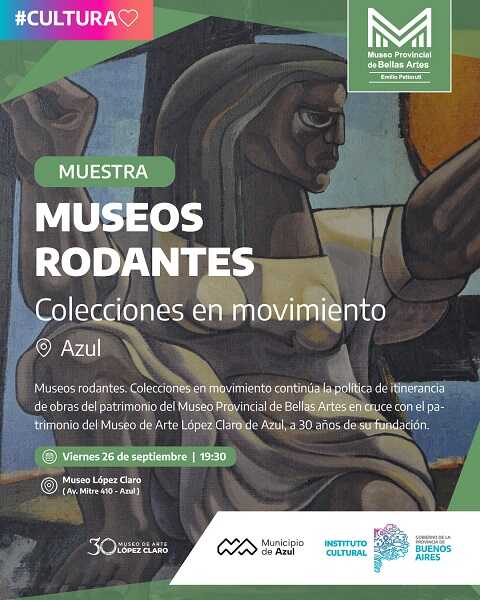 El Museo Provincial de Bellas Artes Emilio Pettoruti inaugurará el viernes 26 la propuesta “Museos rodantes. Colecciones en movimiento” en dos localidades bonaerenses. A las 19:00 la muestra en 2Museos: Bellas Artes y MAC (Calle Sarmiento N° 450) en Bahía Blanca. Y por otro lado, a las 19:30 en el Museo López Claro (Av. Mitre 410) de Azul. Estas actividades forman parte de las propuestas del Instituto Cultural de la Provincia de Buenos Aires.
