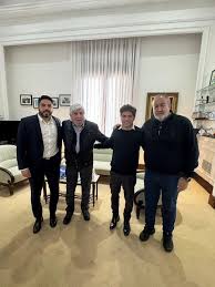 «Nos reunimos junto a Hugo Moyano y Hugo Antonio Moyano con el compañero Axel Kicillof, gobernador de la provincia de Buenos Aires, para seguir trabajando unidos en la defensa de los derechos de los trabajadores y del pueblo argentino», sostuvo Daer en su cuenta de X.