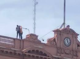 El periodista Jon Heguier fue quien grabó un video en donde se observa a dos personas en el techo de la Casa de Gobierno, incluso bastante cerca de las barandas.