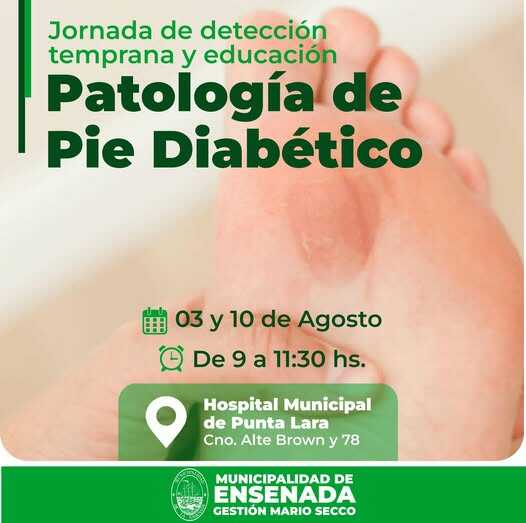 Con el objetivo de promover la prevención y el diagnóstico precoz de lesiones y complicaciones en personas con diabetes, junto con información práctica para el cuidado diario de los pies, el Hospital Municipal de Punta Lara organiza nuevas jornadas sanitarias para septiembre: los días miércoles 3 y miércoles 10, de 9 a 11:30 hs.