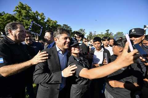 Axel Kicillof: «Confiamos en nuestra fuerza y, por eso, estamos realizando una inversión sin precedentes. Seis años atrás teníamos un cuerpo policial en estado de disolución, hoy podemos decir orgullosamente que contamos con una Policía que sumó a sus filas 20.000 nuevos oficiales. Contamos con cada agente para la construcción de una Policía más honesta, eficaz, profesional y, sobre todo, más humana».