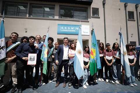 El gobernador de la provincia de Buenos Aires, Axel Kicillof, inauguró este miércoles un jardín de infantes y un nuevo edificio para la Escuela Secundaria N° 76 del municipio de Almirante Brown, junto a la directora general de Cultura y Educación, Flavia Terigi; el diputado Mariano Cascallares y el intendente interino Juán José Fabiani.