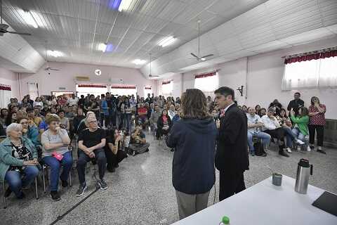 Durante la jornada, Kicillof y el ministro Desarrollo de la Comunidad, Andrés Larroque, mantuvieron un encuentro con jubilados, docentes, estudiantes y vecinos en el centro de jubilados y pensionados del distrito. Al respecto, Larroque subrayó: “Frente a un Gobierno nacional que castiga a los jubilados, nuestro compromiso es trabajar en iniciativas que sirvan de sostén: pusimos en marcha el programa “Mayores Bonaerenses Activos” que, mediante becas mensuales, permite que espacios de encuentro como este puedan seguir funcionando”.