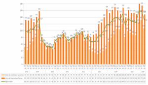 El retroceso también se evidencia frente al pico histórico de 159 puntos registrado en noviembre/diciembre de 2025, lo que marca un punto de inflexión tras los máximos alcanzados luego de las elecciones legislativas de medio término de ese año. En términos interanuales, la baja es más moderada (3,6%) y el índice se mantiene por encima de los 100 puntos desde noviembre de 2023.