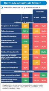 En cuanto a la construcción, los datos presentan un panorama mixto. Mientras los despachos de cemento retrocedieron un 1,8% respecto de enero, el Índice Construya mostró un crecimiento del 15,9%, lo que sugiere una dinámica heterogénea dentro del sector.