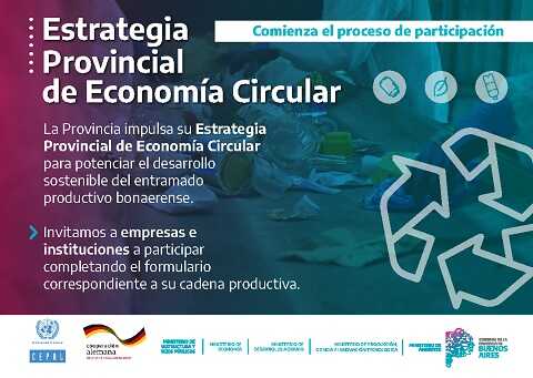 El Gobierno bonaerense invita al entramado productivo a sumarse al proceso de construcción de una estrategia de Economía Circular desarrollada junto a la CEPAL y la Cooperación Alemana para fortalecer el desarrollo sostenible.
