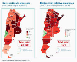 La caída de empresas se dio en 23 de 24 jurisdicciones, con la Provincia de Buenos Aires como la más afectada, con 6.174 firmas menos. Le siguieron Córdoba (-4.090) y Santa Fe (-2.542).