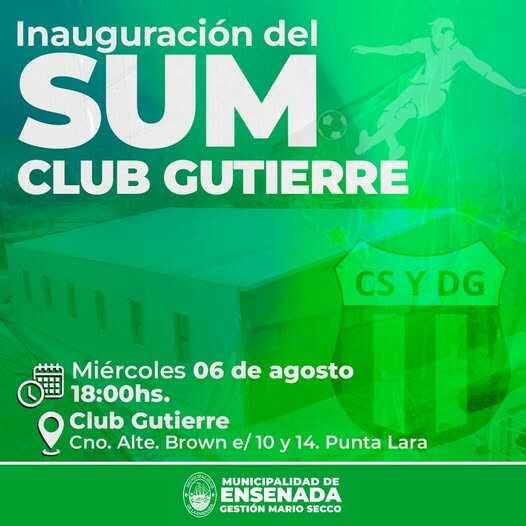 Este miércoles, desde las 18 horas, te esperamos para compartir la inauguración del SUM del Club Gutierre.
