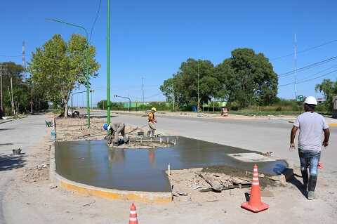 La Municipalidad avanza con la construcción de veredas en dos accesos importantes a la Ciudad como son el tramo urbano de la Autovía Rivadavia y la Avenida Horacio Cestino. Además de la colocación de rampas y luminaria Led, en la temporada de forestación se plantarán árboles en todos los canteros construidos.