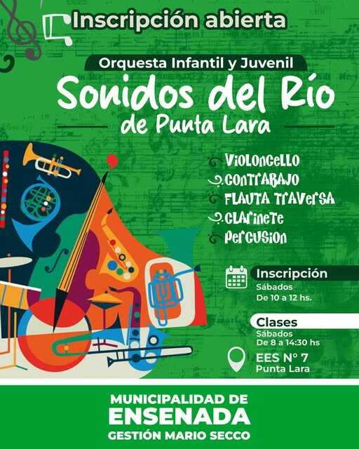 La Orquesta Infantil y Juvenil de Punta Lara abre su inscripción para quienes busquen sumarse a los instrumentos: cello, contrabajo, flauta traversa, clarinete y percusión.