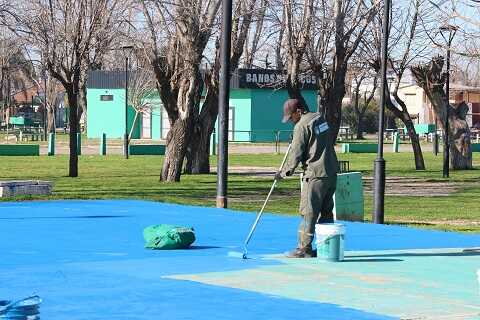 Se lleva adelante trabajos de pintura y mantenimiento en la cancha de básquet ubicada en el parador 7 de Punta Lara.