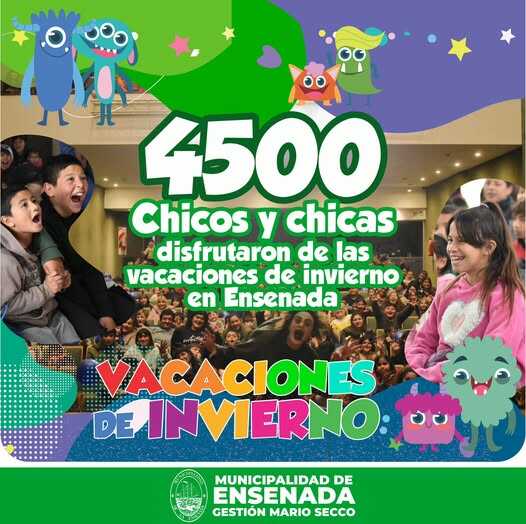 4500 chicos y chicas disfrutaron de las Vacaciones de Invierno en nuestra ciudad. Como cada año, llevamos a cabo diversos shows artísticos en instituciones barriales y en el Cine Teatro Municipal: payasos, magia, humor y circo. En Ensenada, la Cultura es prioridad.